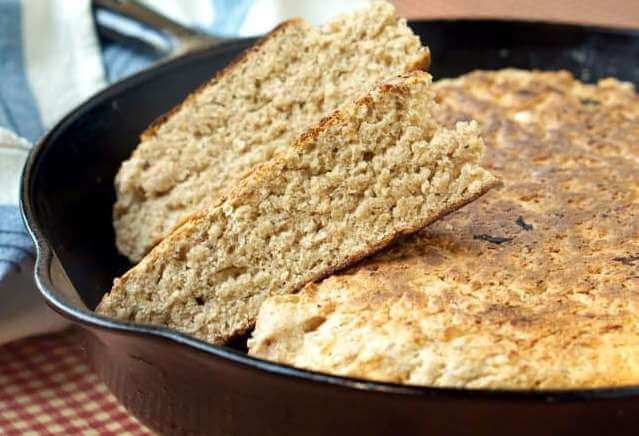 Bannock is traditional oat bread, from the Shetland region in Scotland. It was typically cooked by the hearth in a skillet, and can be made on an outdoor camp fire as easily as on your stove at home. The tradition came to the Americas with early European settlers to Canada, and from there was passed along to the Native Americans who took it across Canada to Alaska. Over that time, modifications took place, adding leavening for less density and using different flours that were regionally available, like corn and wheat. Today there may be as many different types of Bannock as there are fish in the sea, baked, fired, even fried—with a range of ingredient combinations as well.