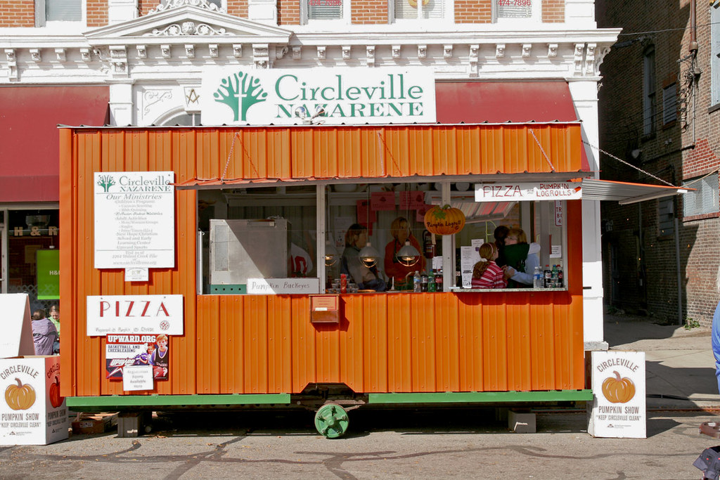 Circleville, Ohio is conveniently located just off Route 23, about 20 miles south of Columbus. As you approach, the town’s iconic water tower, painted to resemble a pumpkin—stem and all—comes into view. If you’re not keen on driving, consider hopping on one of the 30 bus tours that make a stop at the festival or park in one of the lots and take a shuttle over. You’ll see the signs at several church parking lots, etc. for where to park. Check the website for details on transportation options.