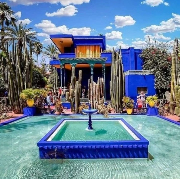 Architecturally, the garden features several noteworthy structures, including the Art Deco villa that once belonged to Jacques Majorelle, as well as pavilions, fountains, and pathways adorned with intricate tilework and decorative elements. The vibrant blue color of the buildings, known as “Majorelle Blue,” has become synonymous with the garden and is a popular subject for photographers and artists.