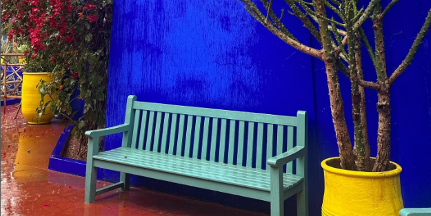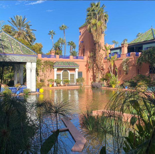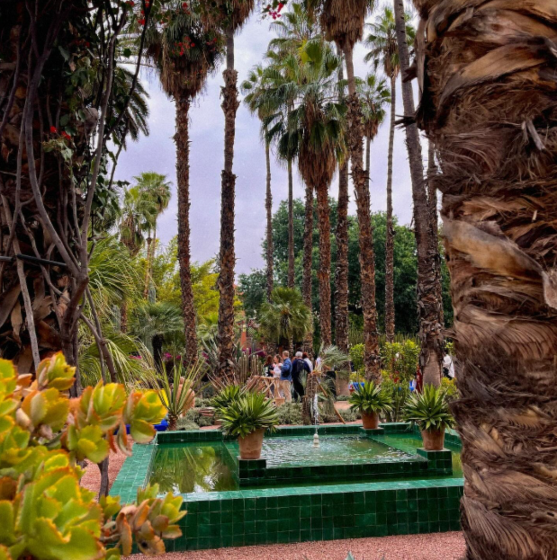 I slowly eased into Marrakesh with a visit to the Jardin Majorelle, a botanical garden that offers visitors a unique and tranquil experience amidst the bustling city. Originally designed by the French painter Jacques Majorelle in the 1920s and 1930s, the garden is known for its vibrant cobalt blue buildings, lush greenery, and diverse collection of plant species. The garden was lush with vibrant flora, the air cool and sweetly fragrant with jasmine, and the iconic cobalt blue accents of the villa vivid against the greenery. It was a painter’s dream, a serene paradise that once inspired French fashion designer Yves Saint Laurent and his partner Pierre Bergé. In 1980, Saint Laurent and Bergé purchased the garden and restored it, ensuring its preservation for future generations. After Saint Laurent’s death, his ashes were scattered in the garden, further solidifying its connection to the iconic designer.