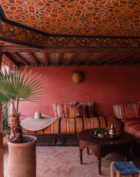 Riads are known for their detailed and ornate decor, which showcases the rich craftsmanship of Moroccan artisans. Intricate tile work (known as zellij), carved wood, and plasterwork were used throughout the house, along with vibrant rugs, cushions, lanterns, and pottery, which added even more color and texture to the architecture.