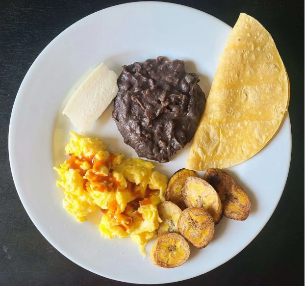 Mashed sweet plantains stuffed with refried black beans, then fried. Yes, it sounds odd. Yes, it’s delicious.